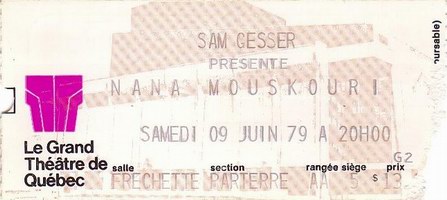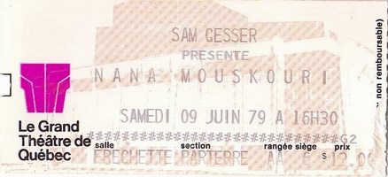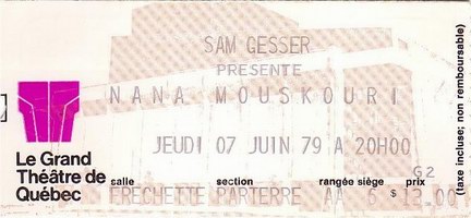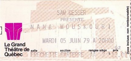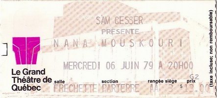 | 05.06.1979 | Québec, QC | Grand Théâtre de Quebec - Salle Louis-Fréchette | CDN | Ticket | C | |||