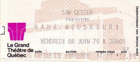 | 06.06.1979 | Québec, QC | Grand Théâtre de Quebec - Salle Louis-Fréchette | CDN | Ticket | C | |||