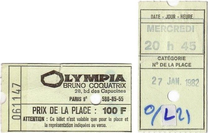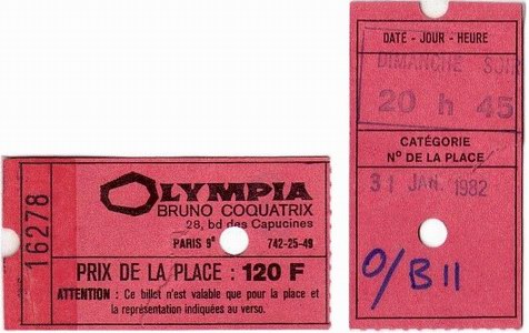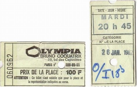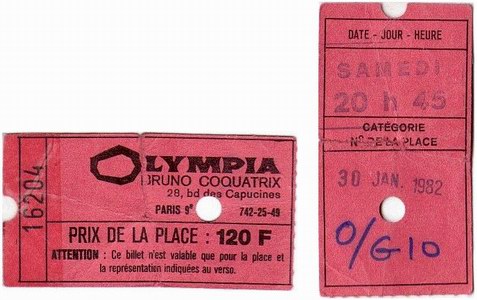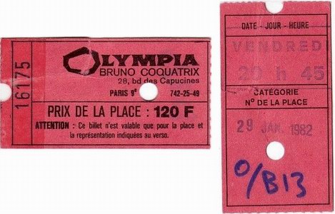 | 27.01.1982 | Paris | Olympia | F | Ticket | C | |||