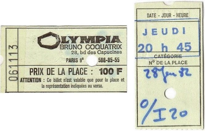 | 28.01.1982 | Paris | Olympia | F | Ticket | C | |||