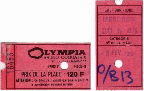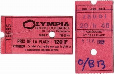 | 04.02.1982 | Paris | Olympia | F | Ticket | C | |||