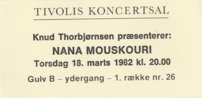 | 17.03.1982 | Kopenhagen | Tivoli Koncertsal | DK | Ticket | C | |||