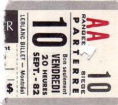 | 10.09.1982 | Montréal, QC | Place des Arts - Salle Wilfrid Pelletier | CDN | Ticket | C | |||