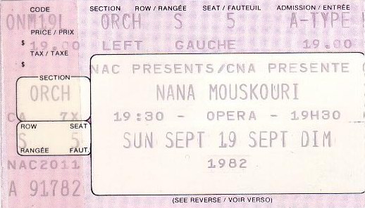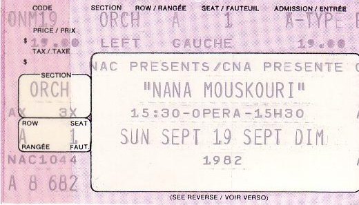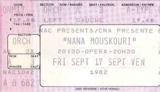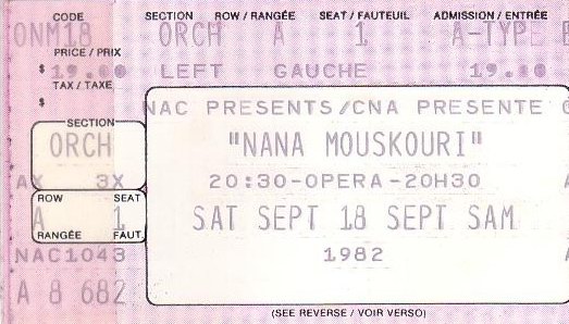 | 19.09.1982 | Ottawa, ON (15:30 Uhr) | National Arts Center | CDN | Ticket | C | |||