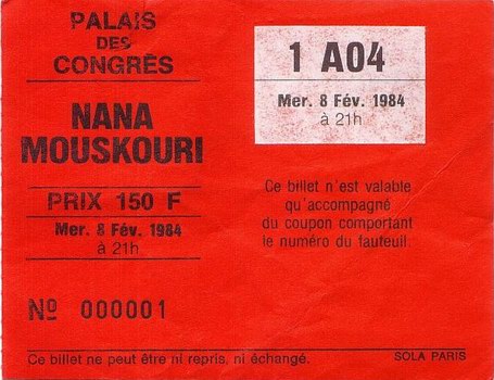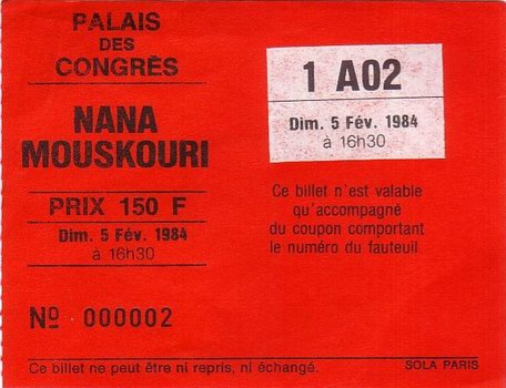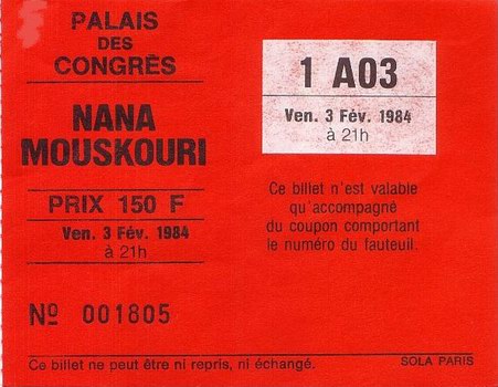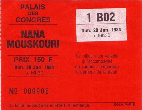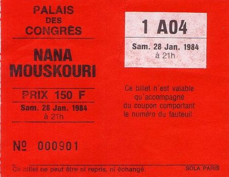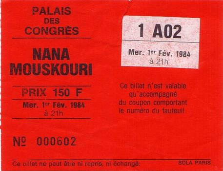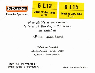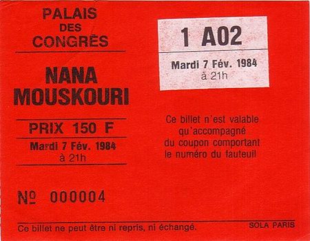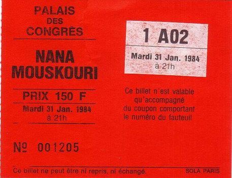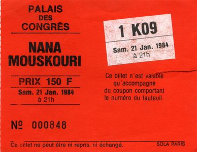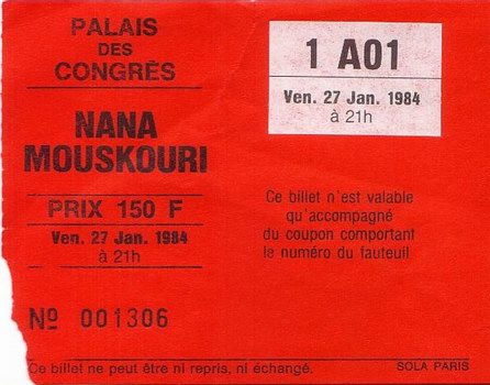 | 27.01.1984 | Paris | Palais des congrès | F | Ticket | C | |||