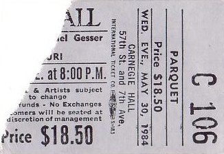 | 30.05.1984 | New York, NY | Carnegie Hall | USA | Ticket | C | |||
