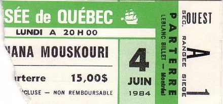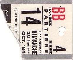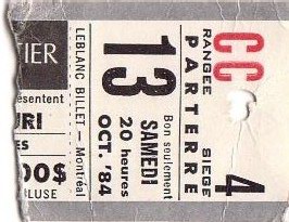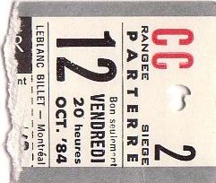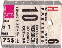 | 10.10.1984 | Montréal, QC | Place des Arts - Salle Wilfrid-Pelletier | CDN | Ticket | C | |||