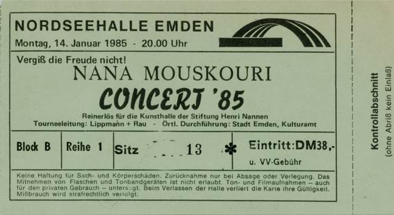 | 14.01.1985 | Emden | Nordseehalle | D | Ticket | C | |||