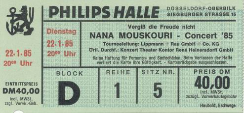 | 22.01.1985 | Düsseldorf | Philipshalle | D | Ticket | C | |||