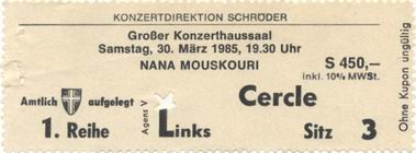 | 29.03.1985 | Wien | Konzerthaus | A | Ticket | C | |||