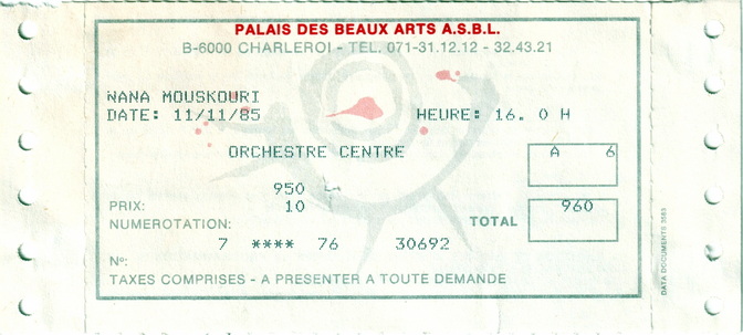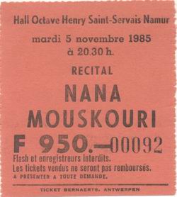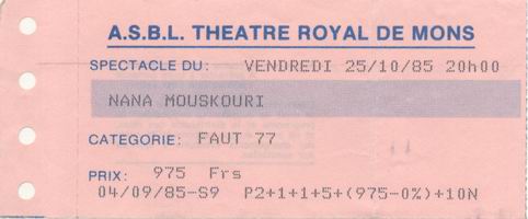 | 25.10.1985 | Mons | Théâtre Royal | B | Ticket | C | |||