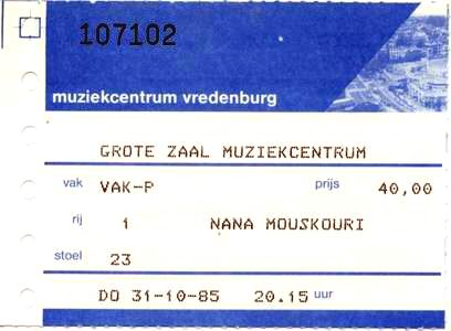| 30.10.1985 | Rotterdam | De Doelen | NL | Ticket | C | |||