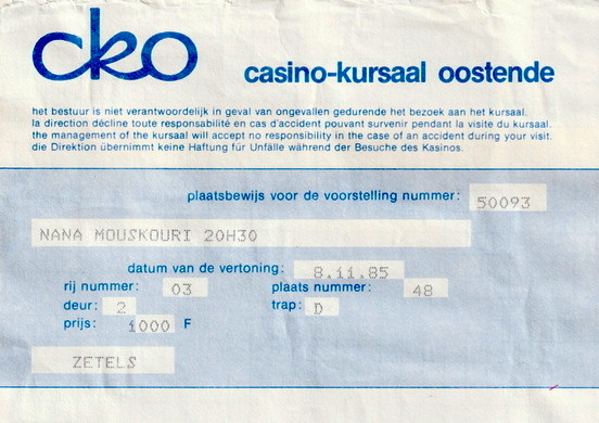 | 08.11.1985 | Oostende | Casino Kursaal | B | Ticket | O | |||