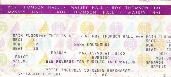 | 12.05.1990 | Toronto, ON | Roy Thompson Hall | CDN | Ticket | C | |||