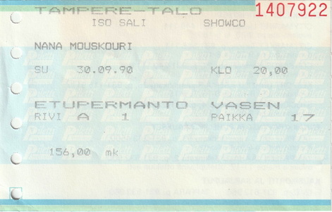 | 30.09.1990 | Tampere | Concerthall | SF | Ticket | O | |||