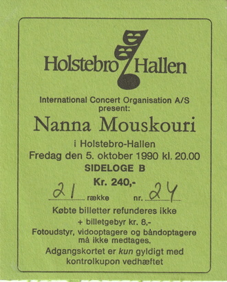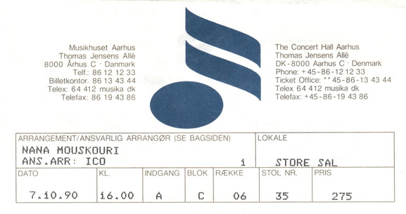 | 07.10.1990 | Arhus 16:00 | Musikhuset | DK | Ticket | O | |||
