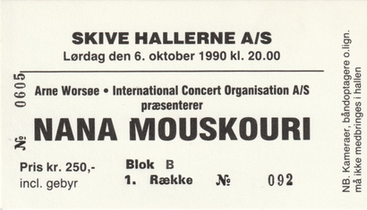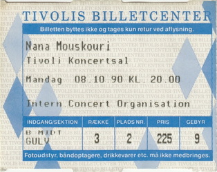 | 08.10.1990 | Kopenhagen | Tivoli | DK | Ticket | O | |||