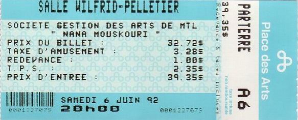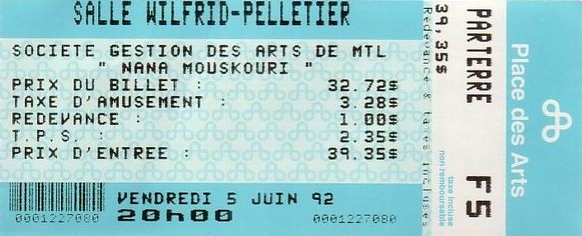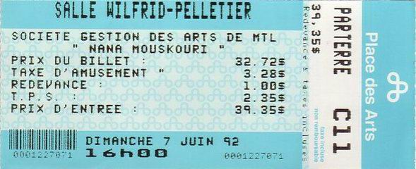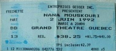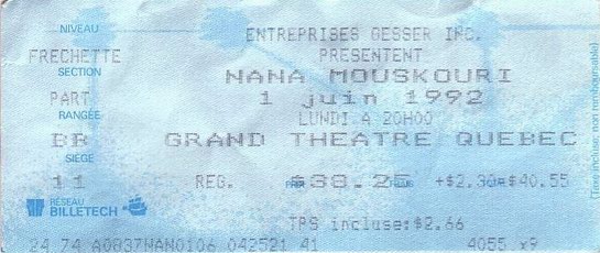 | 31.05.1992 | Quebec, QC | Grand Théâtre | CDN | Ticket | C | |||