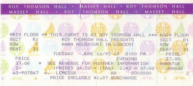 | 16.06.1992 | Toronto, ON | Roy Thomson Hall | CDN | Ticket | C | |||