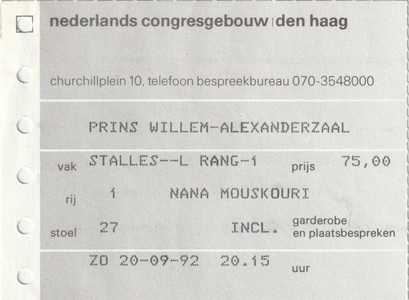 | 20.09.1992 | Den Haag | Congresgebouw | NL | Ticket | O | |||