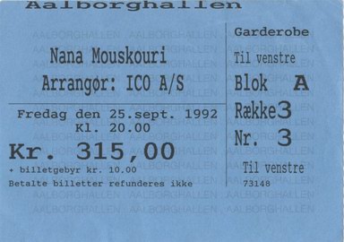 | 10.10.1992 | Kopenhagen | Tivoli | DK | Ticket | C | |||