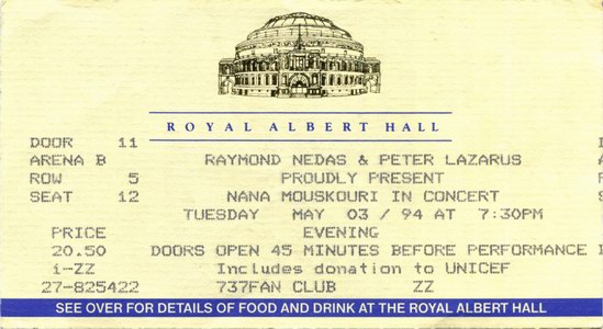 | 03.05.1994 | London | Royal Albert Hall | GB | Ticket | O | |||