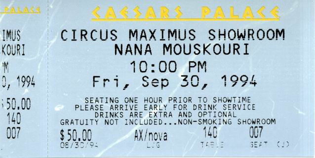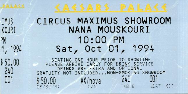 | 01.10.1994 | Las Vegas, NV | Caesars Palace | USA | Ticket | C | |||
