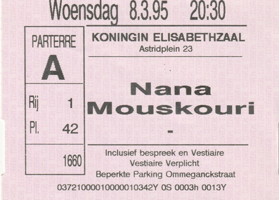 | 08.03.1995 | Anvers / Antwerpen | Koningin Elizabethzaal | B | Ticket | O | |||