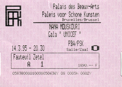 | 14.03.1995 | Bruxelles / Brüssel | Palais des Beaux Arts | B | Ticket | O | |||