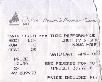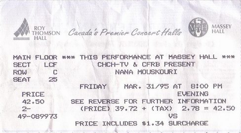 | 01.04.1995 | Toronto, ON | Roy Thompson Hall | CDN | Ticket | C | |||
