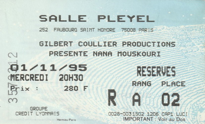 | 28.10.1995 | Paris | Salle Pleyel | F | Ticket | O | |||
