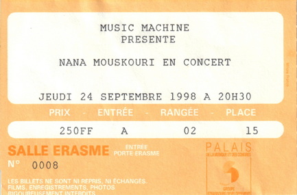 | 25.06.1998 | Athens / Athen (Benefiz Konzert Melina Mercouri) |