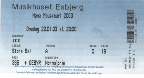 | 22.01.2003 | Esbjerg | Musikhuset | DK | Ticket | O | |||