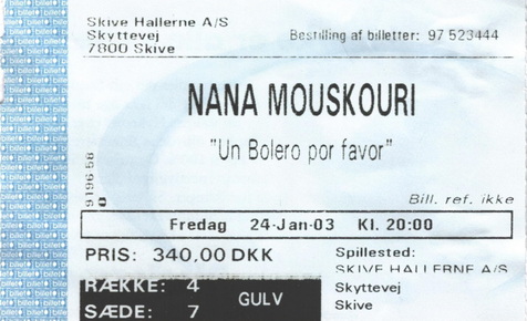 | 24.01.2003 | Skive | Skive-Hallerne | DK | Ticket | O | |||