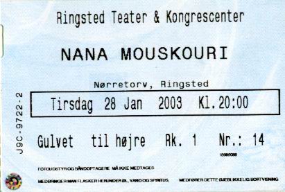 | 28.01.2003 | Ringsted | Teater & Kongrescenter | DK | Ticket | C | |||