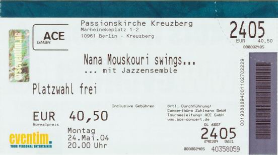 | 24.05.2004 | Berlin | Passionskirche (Jazzkonzert) | D | Ticket | O | |||