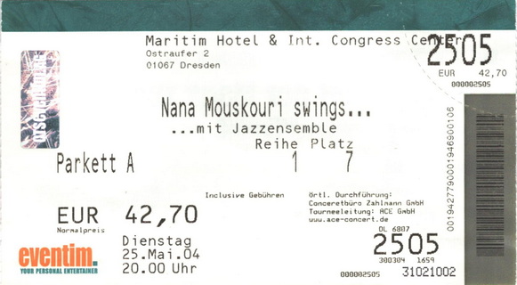 | 25.05.2004 | Dresden | ICC (Jazzkonzert) | D | Ticket | O | |||