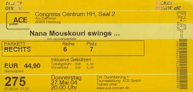 | 30.05.2004 | Hannover | Theater am Aegi (Jazzkonzert) | D | Ticket | O | |||