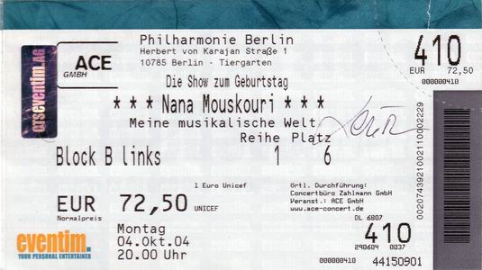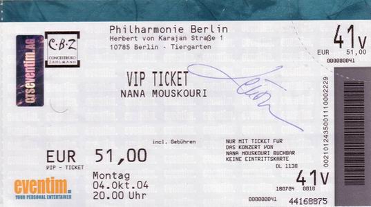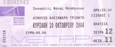| 10.10.2004 | Athen | Athens Concert Hall (Megaro Mousikis) | GR | Ticket | O | |||