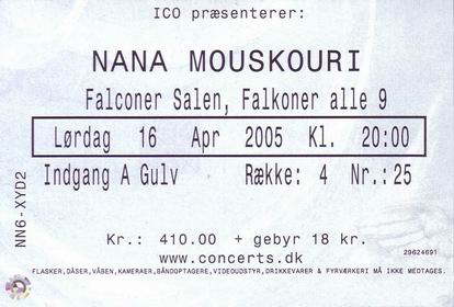 | 16.04.2005 | Kopenhagen | Falconer Salen | DK | Ticket | O | |||