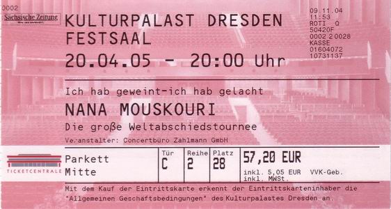 | 20.04.2005 | Dresden | Kulturpalast | D | O | ||||