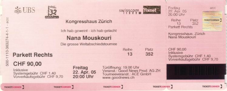 | 22.04.2005 | Zürich | Kongresshaus | CH | O | ||||
