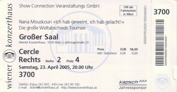 | 23.04.2005 | Wien | Konzerthaus | A | O | ||||