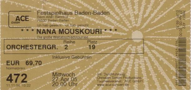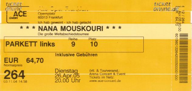 | 26.04.2005 | Frankfurt | Alte Oper | D | O | ||||