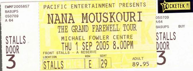 | 01.09.2005 | Wellington | Michael Fowler Centre | NZ | Ticket | C | |||