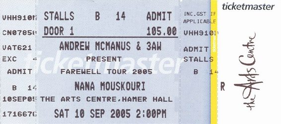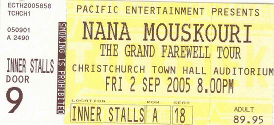 | 02.09.2005 | Christchurch | Town Hall | NZ | Ticket | C | |||