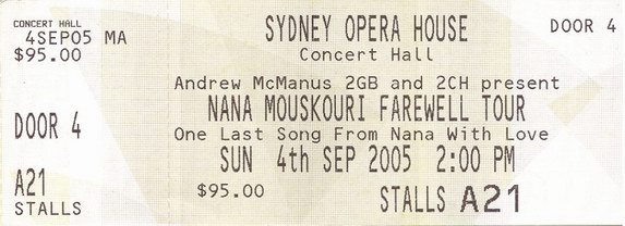 | 04.09.2005 | Sydney | Opera House 20:00 Uhr | AUS | C | ||||