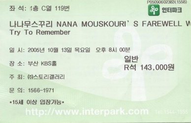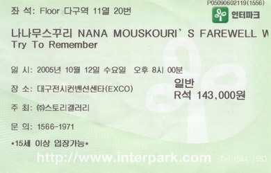 | 13.10.2005 | Busan | KBS Hall | ROK | Ticket | C | |||