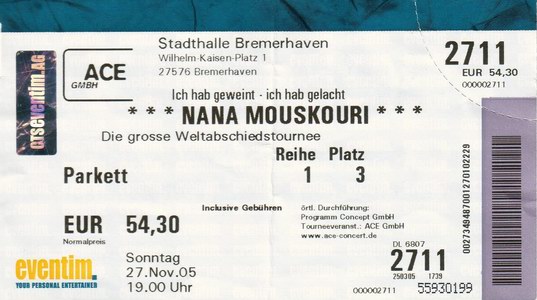 | 27.11.2005 | Bremerhaven | Stadthalle | D | Ticket | O | |||