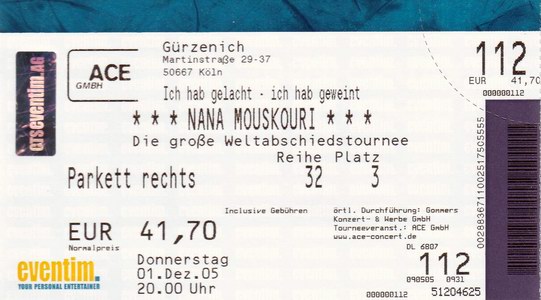 | 01.12.2005 | Köln | Gürzenich | D | O | ||||
